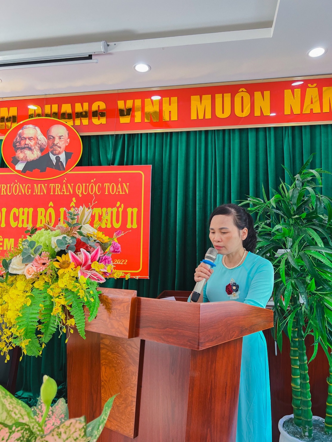 Sau khi nghe báo cáo, Đại hội đã có 2 tham luận của 2 đồng chí đảng viên tham dự Đại hội làm rõ thêm những kết quả đạt được và đóng góp vào giải pháp thực hiện nhiệm vụ lãnh đạo trong nhiệm kỳ 2022 - 2025, nhằm từng bước xây dựng chi bộ ngày càng vững mạnh góp phần xây dựng Chi bộ trường mầm non Trần Quốc Toản hoàn thành xuất sắc nhiệm vụ.