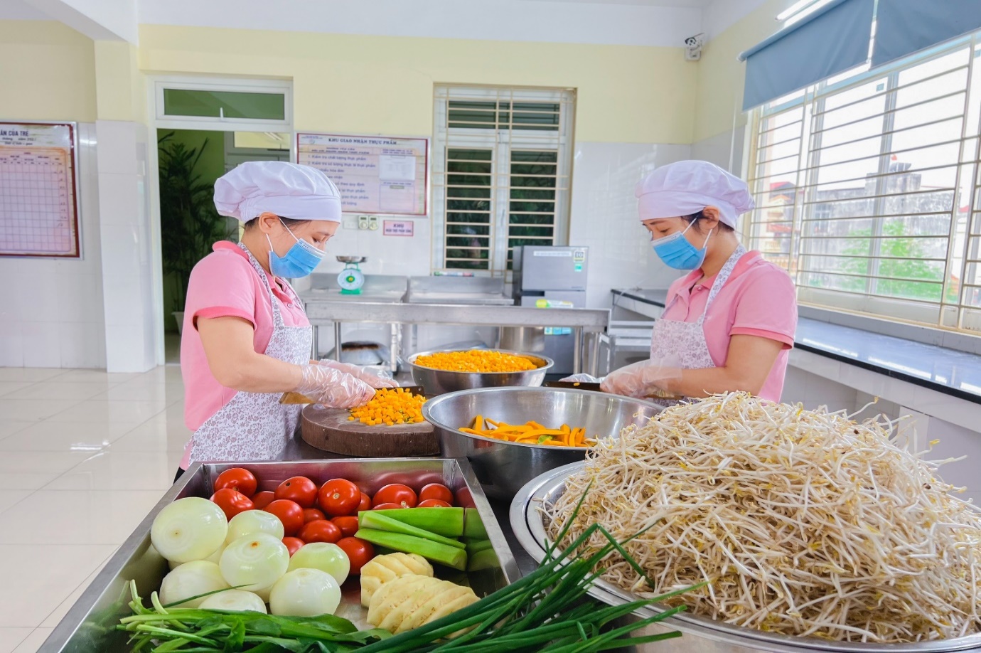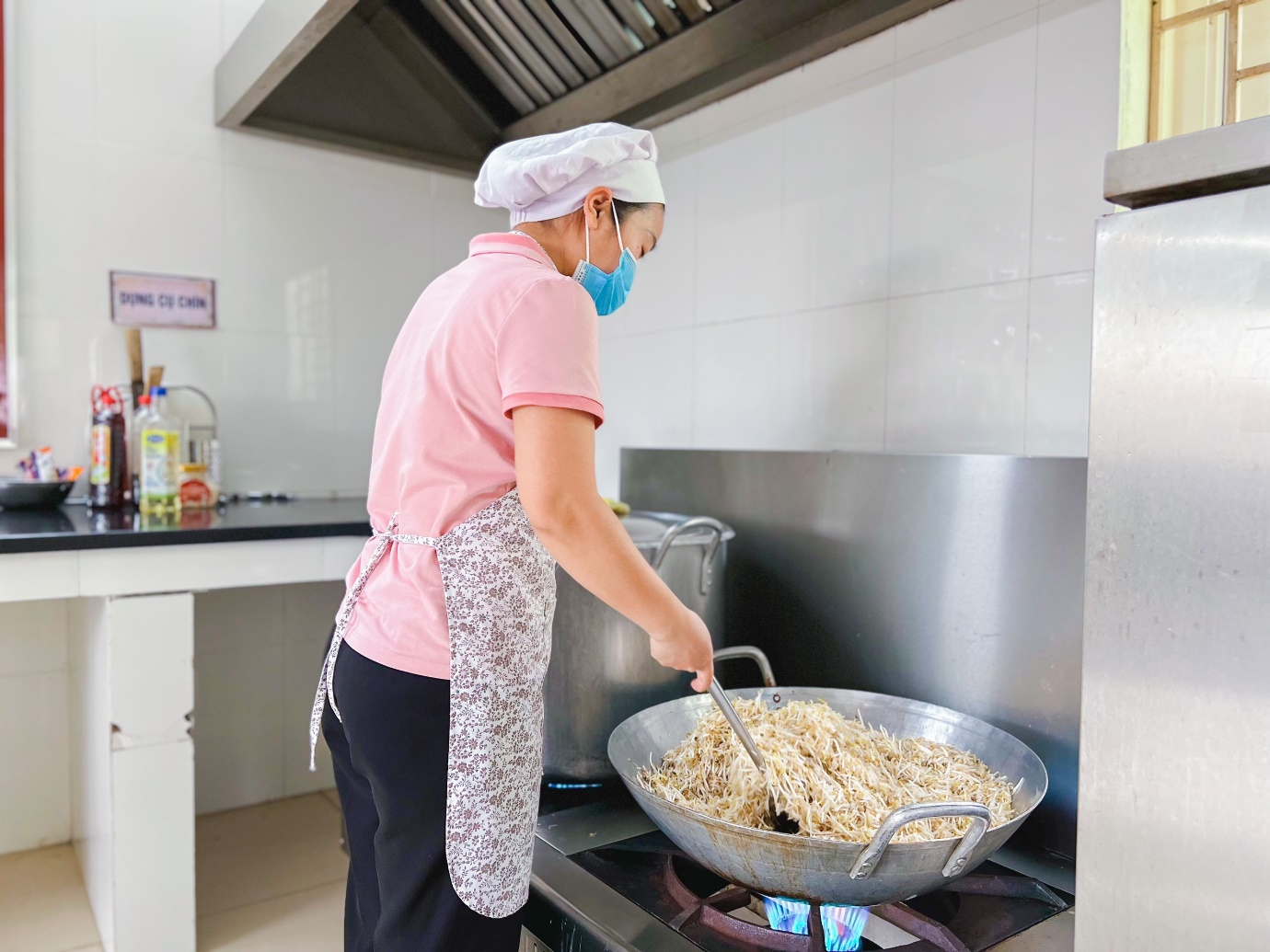 Nhà trường thường xuyên tăng cường công tác kiểm tra giám sát việc giao nhận thực phẩm. Không chỉ thực phẩm đảm bảo an toàn, việc chế biến thức ăn, quá trình bảo quản thực phẩm đều phải tuân thủ theo quy trình bếp 1 chiều từ khâu sơ chế, đến khâu chia thức ăn luôn thực hiện tốt.