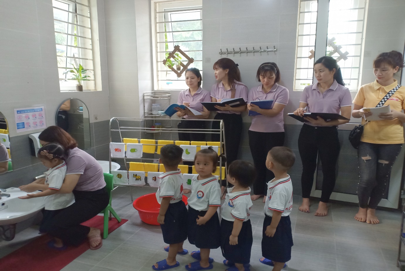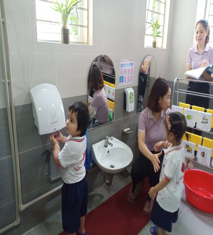Mầm non Trần Quốc Toản tổ chức chuyên đề Rửa tay lau mặt cho trẻ