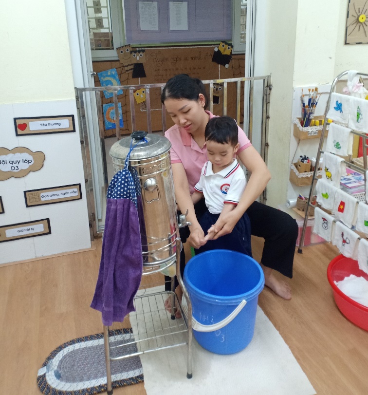 Ảnh 5, 6: Các cô giáo rửa tay và lau mặt cho trẻ Trên đây là một số hình ảnh của chuyên đề Rửa tay lau mặt cho trẻ. Để công tác chăm sóc nuôi dưỡng trẻ ngày một nâng lên, nhà trường mong muốn nhận được sự phối hợp của các bậc phụ huynh, rất mong các bậc phụ huynh luôn đồng hành với nhà trường để các con luôn mạnh khỏe và tràn đầy năng lượng. Thân ái!